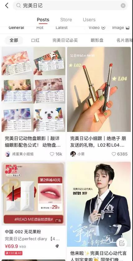▲ 小红书上完美日记产品的分享笔记