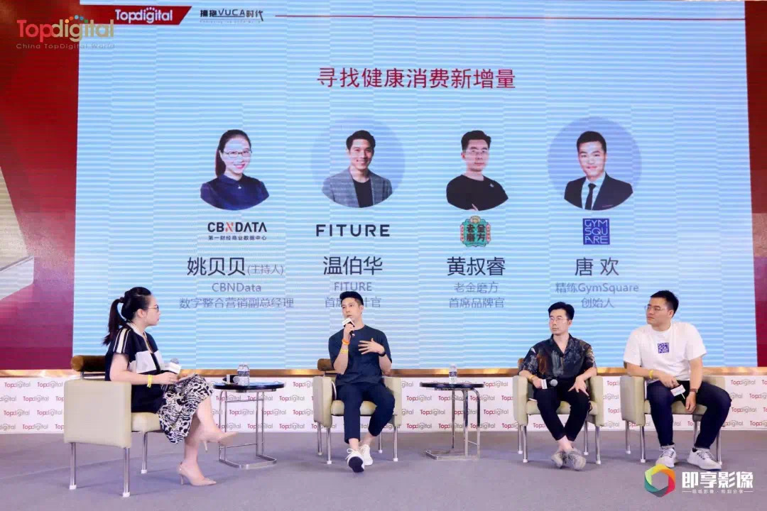 ▲ 左起为:CBNData数字整合营销副总经理姚贝贝、FITURE首席设计官温伯华、老金磨方首席品牌官黄叔睿、GymSquare创始人唐欢