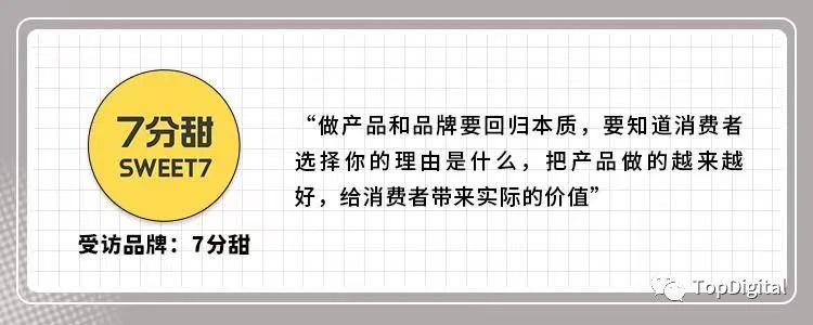 7分甜:7分甜是第一个将甜品的杨枝甘露做成杯装饮品的新茶饮品牌,目前杨枝甘露已成为行业爆款,对于我们而言,上半年最大的反思就是做品牌要回归产品本质。今年3月份时,我们调整了新的品牌战略:“7分甜,更好喝!”就是基于消费者需求,将产品做的更好、食材更加新鲜、递送更及时有效,为消费者带来实际的价值。