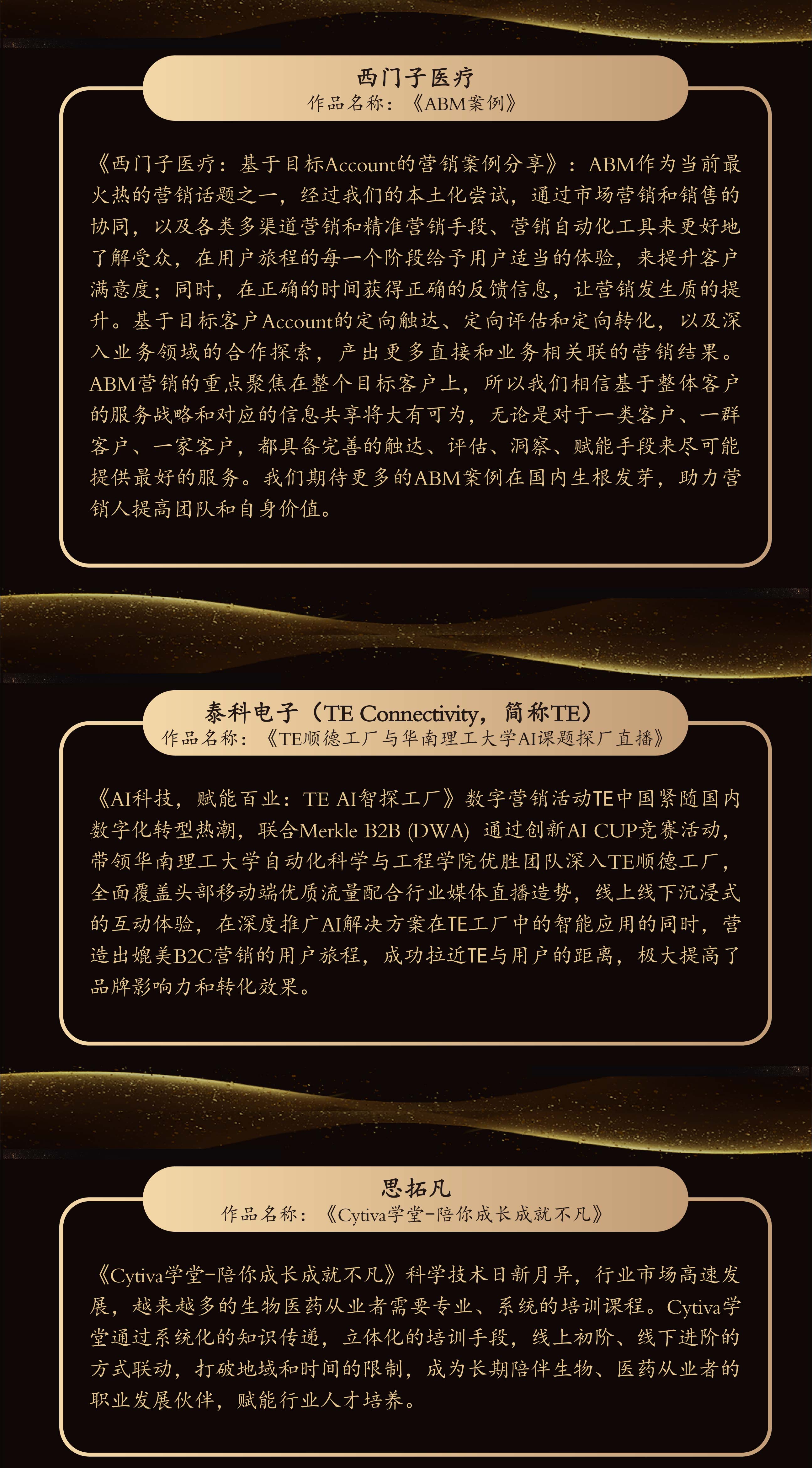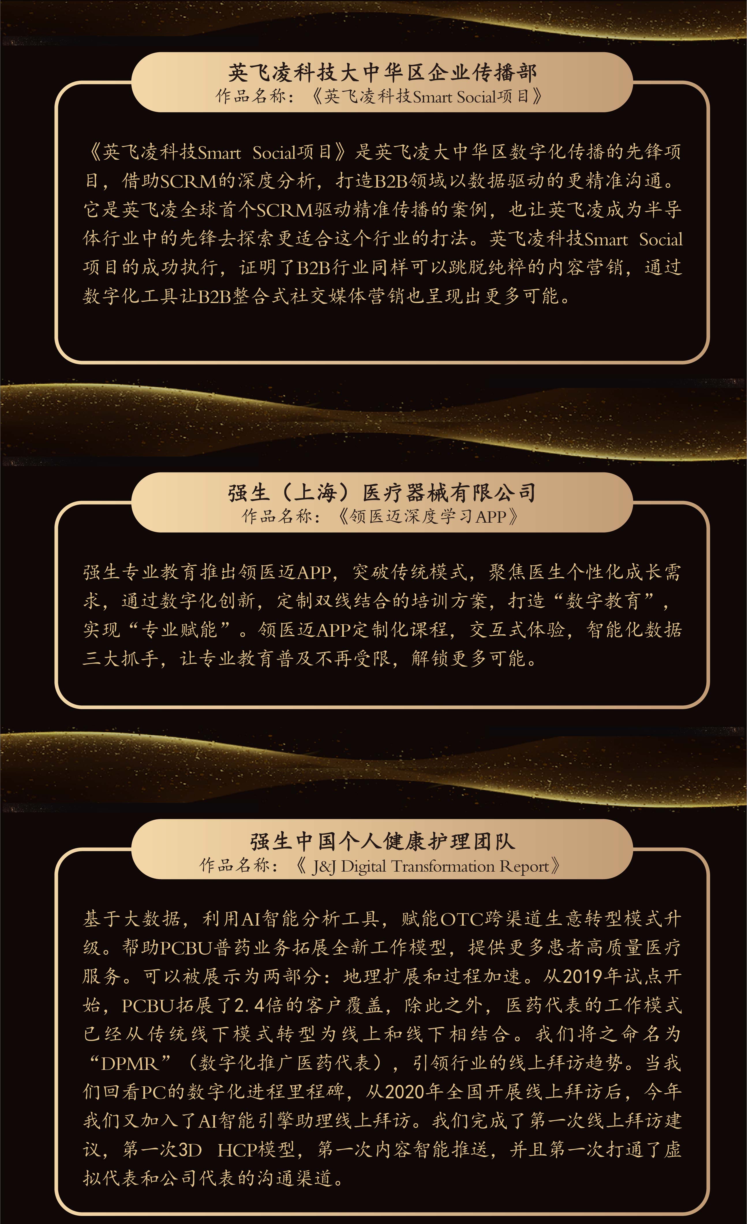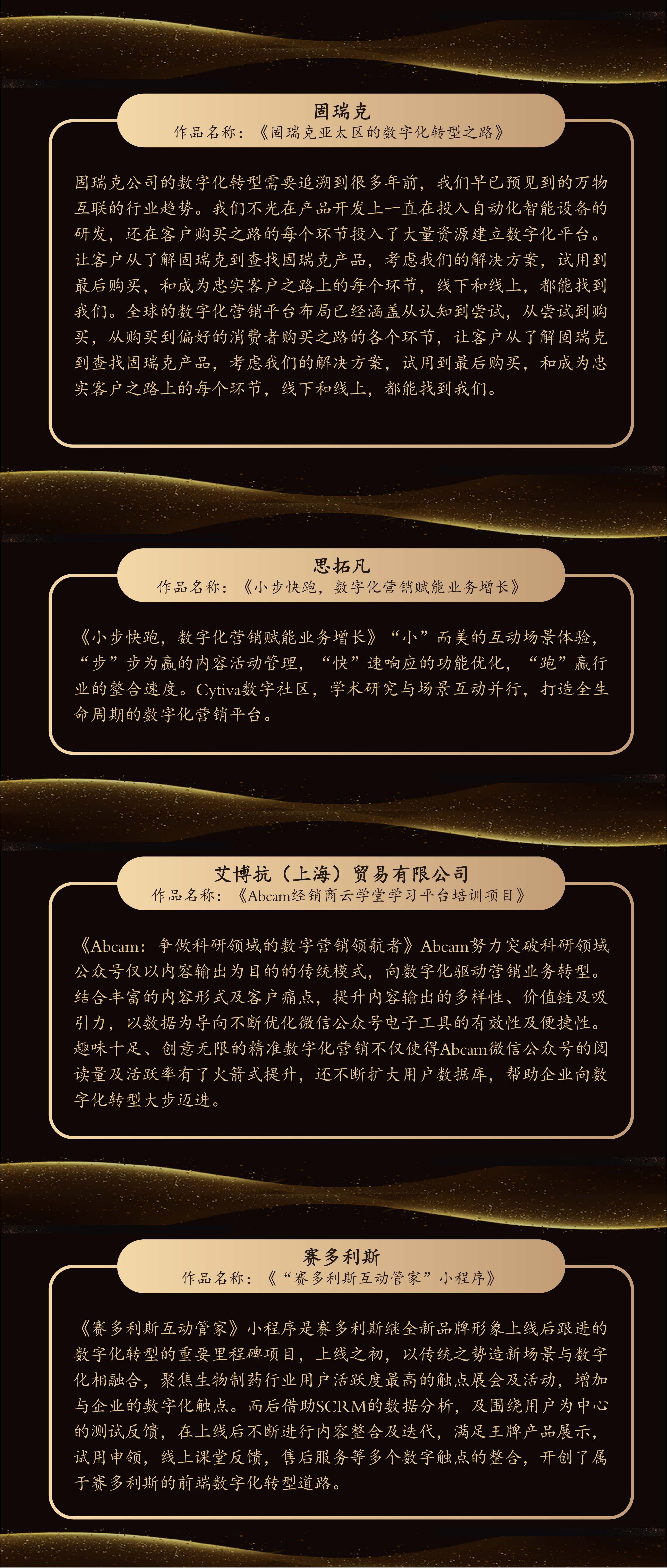 优秀数字营销转型奖,旨在发掘在企业营销数字化转型端上已有一些可追溯,可衡量,一定程度可应用到业务端并实现增长的优秀数字化实践案例。