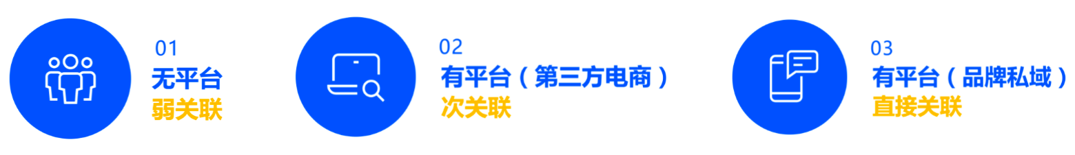 以上三种关系中,第一种情况(无平台),由于脱离了品牌运营的独立环境,以“人”为单位的沟通,往往容易发生渠道/经销商在角色(个人与品牌)边界模糊不清的缺陷。第二种情况(以第三方电商为平台),虽然安全便捷,但消费者与品牌缺乏沟通,品牌缺失掌控力,削弱了与消费者的黏度。而第三种情况(品牌私域)很好地弥补了前两者中消费者与品牌互动的不足,提升品牌运营的掌控力,拉近与消费者的距离。品牌用意亦在于此。
