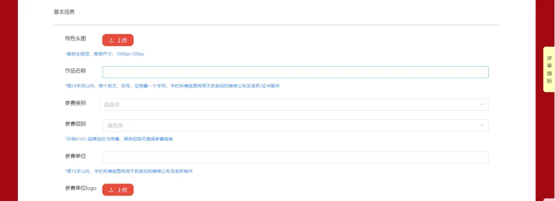 • 参赛单位logo需上传高清透明底PNG文件,所申报的参赛组别参赛单位类别等基本信息也要仔细填写,以便获奖后用于榜单公布及奖杯/证书制作