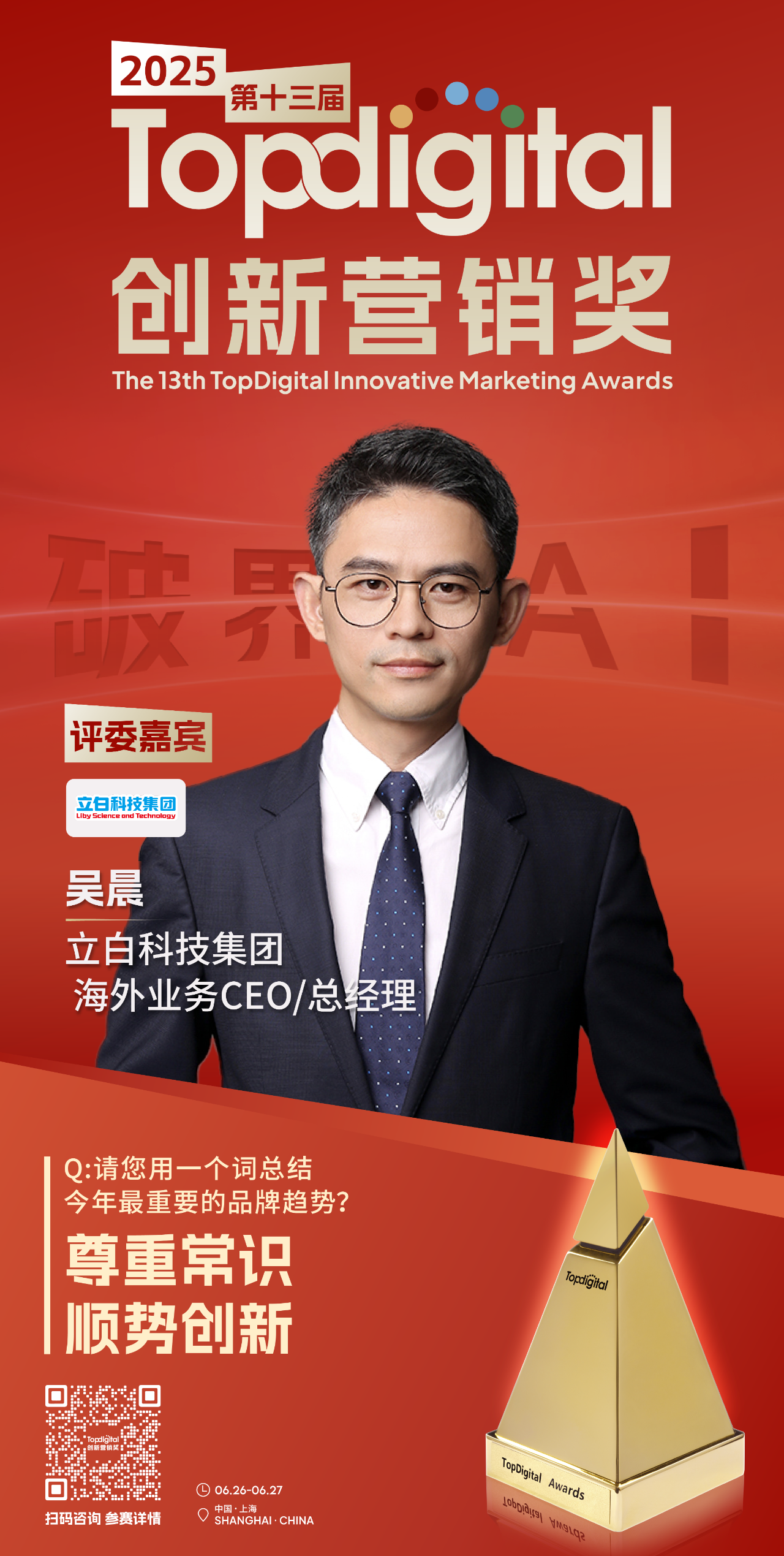 此次TopDigital非常荣幸邀请到立白科技集团海外业务CEO/总经理吴晨加入专家评审团,与我们共同见证品牌典范、杰出产品、精彩案例以及优秀服务机构的诞生。