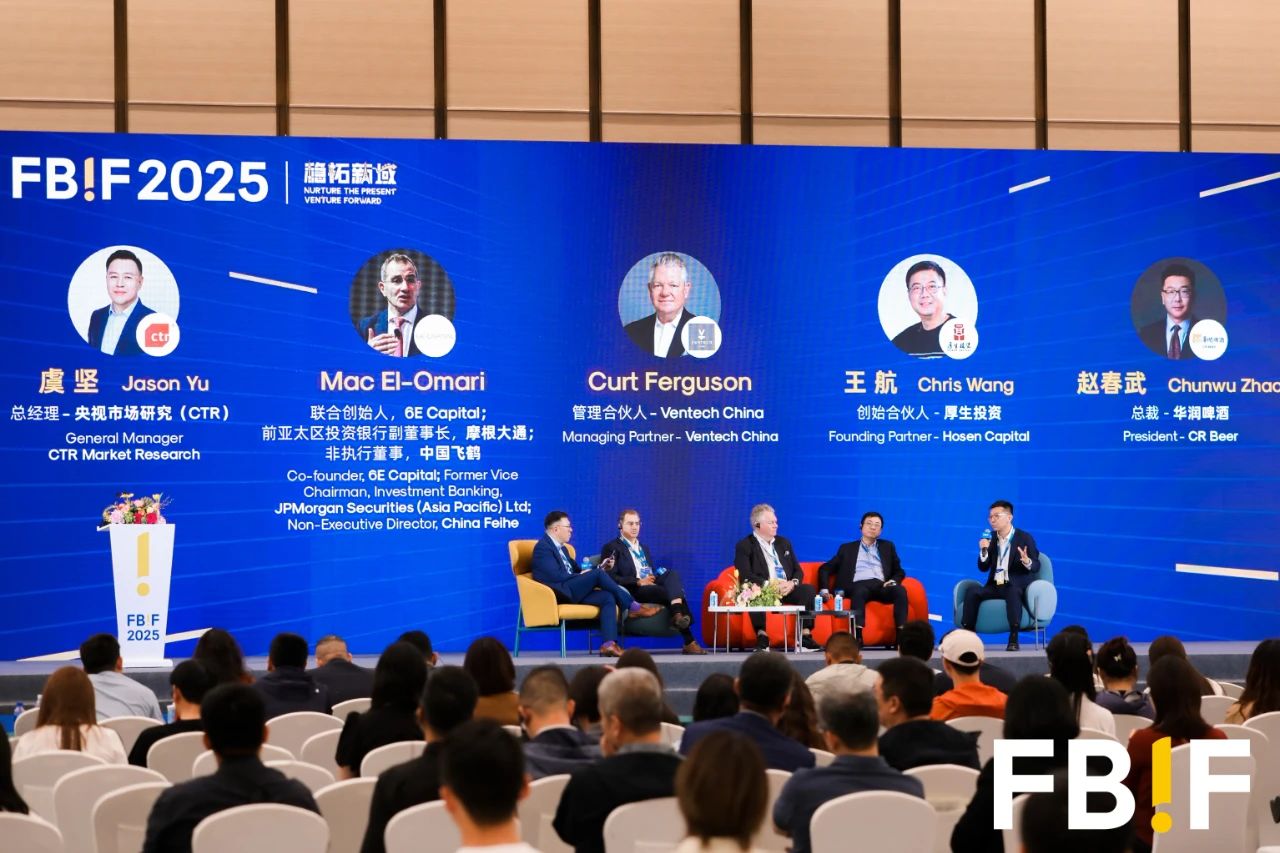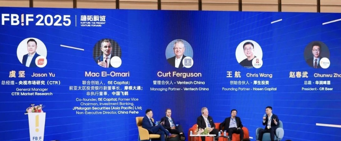 CTR央视市场研究总经理虞坚,6E Capital联合创始人、摩根大通前亚太区投资银行副董事长、中国飞鹤非执行董事Mac El-Omari,Ventech China管理合伙人Curt Ferguson,厚生投资创始合伙人王航,华润啤酒总裁赵春武