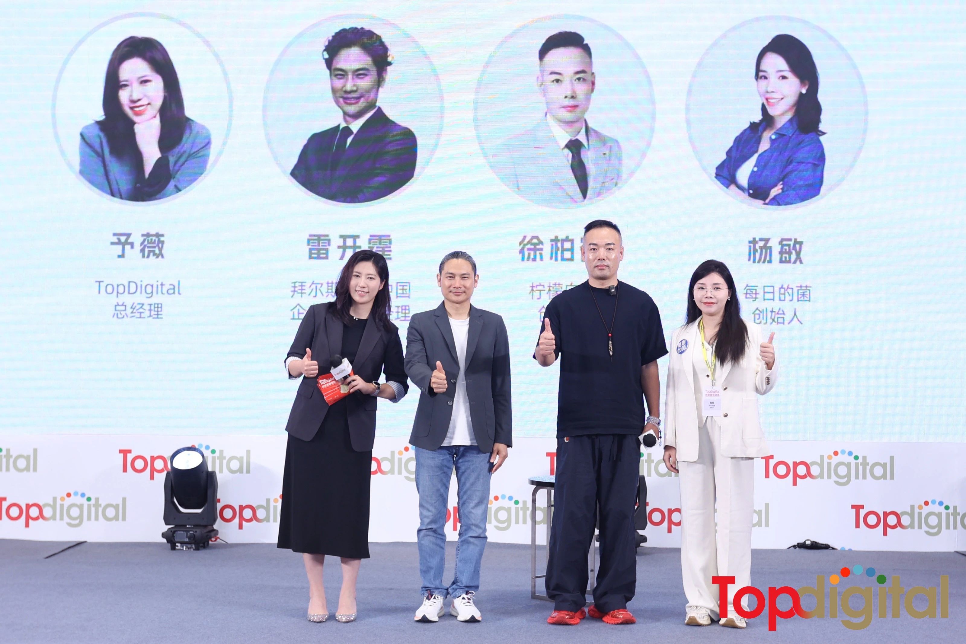 从左往右:TopDigital总经理予薇、拜尔斯道夫中国企业事务总经理雷开霆、柠檬向右创始人徐柏鹤、每日的菌创始人杨敏