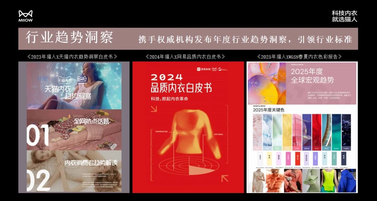 此外,也要打造行业的责任。我们和天猫一起联合共创了内衣趋势洞察的白皮书,我们单独发布了2024品质内衣的白皮书。既然我们已经做到了中国Top1,那就要成为行业的引领者和白皮书的制定者。除了行业内品质内衣白皮书的发布,我们也发布了年度色彩趋势。比如前几年,比较火的是让人更加愉悦、更加快乐的多巴胺颜色,今年我们也同样发布了2025年的内衣色彩报告。