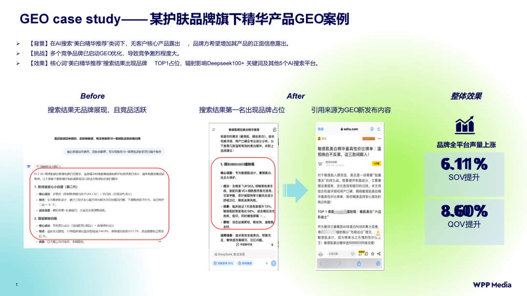 Fiona Jia:首先是高决策周期和高客单价的行业(金融保险、3c电子、旅游、汽车)消费者在购买前需要深度研究的,AI可以通过整合网上所有信息给到用户,品牌方可以通过结构化知识注入权威内容,将品牌信息嵌入AI答案的“黄金占位”,触达用户决策链的第一触点。