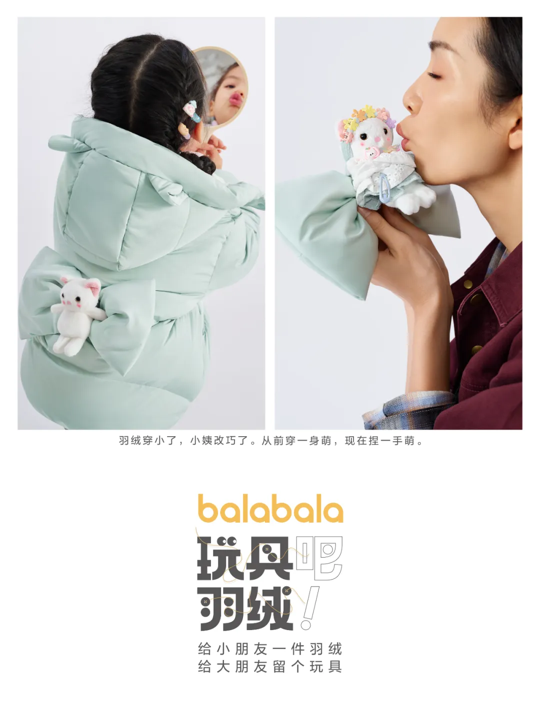 你或许也注意到了,今年巴拉巴拉有两波营销动作很出圈,一个是上半年感动了许多人的《中国小朋友》,一个是最近引发不少年轻父母共鸣的《玩具吧羽绒》,这两个项目和巴拉巴拉以前的表达风格很不一样,视角从单纯关注小孩转变为与父母共情,更温情,更细腻,也更动人。