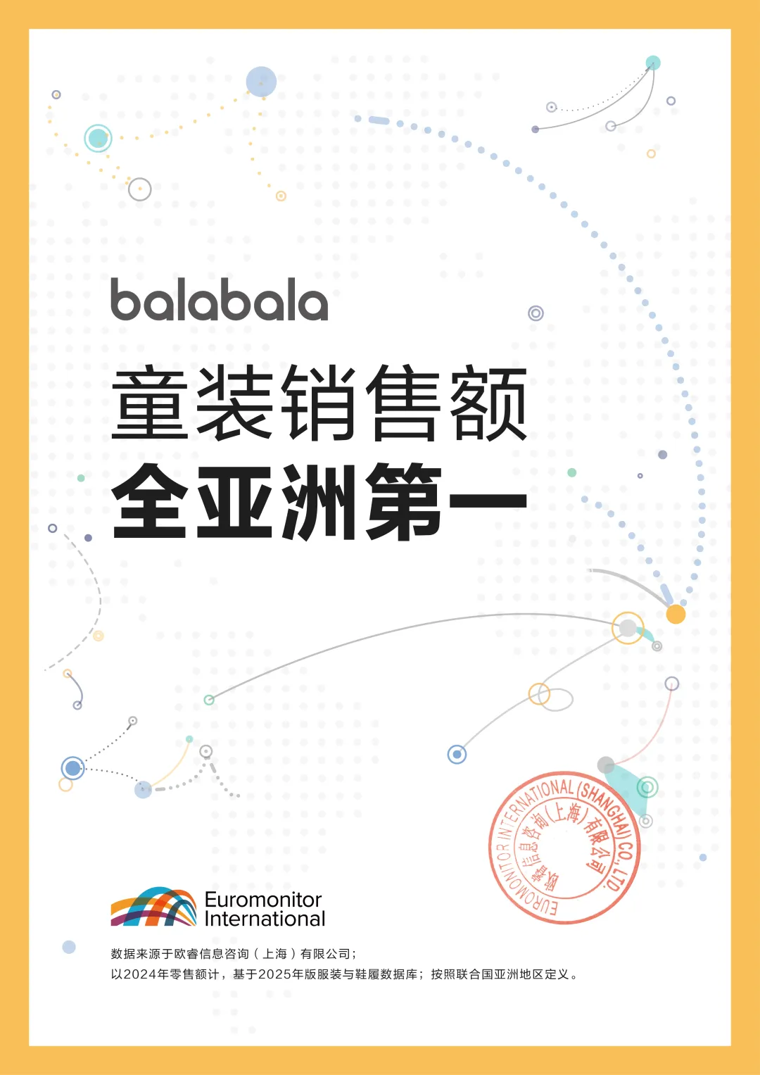 欧睿认证—巴拉巴拉童装销售额全亚洲第一