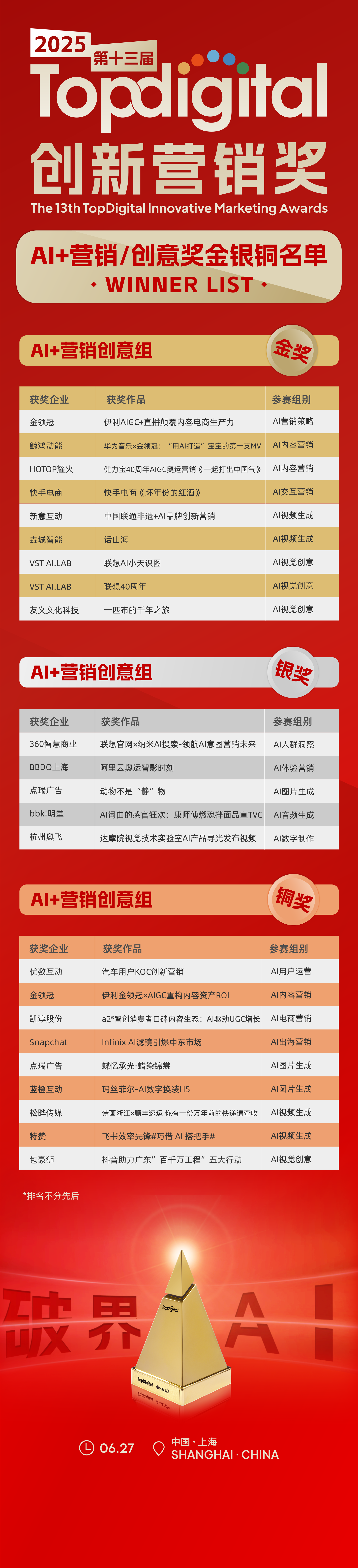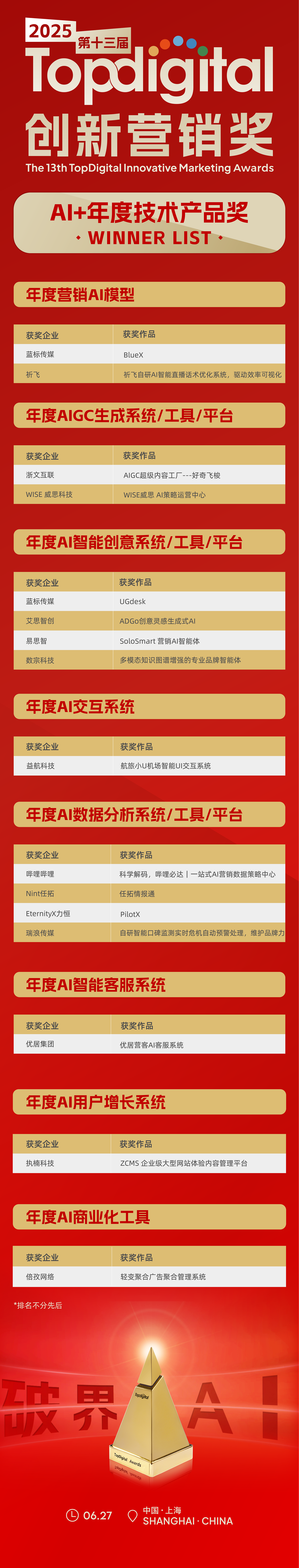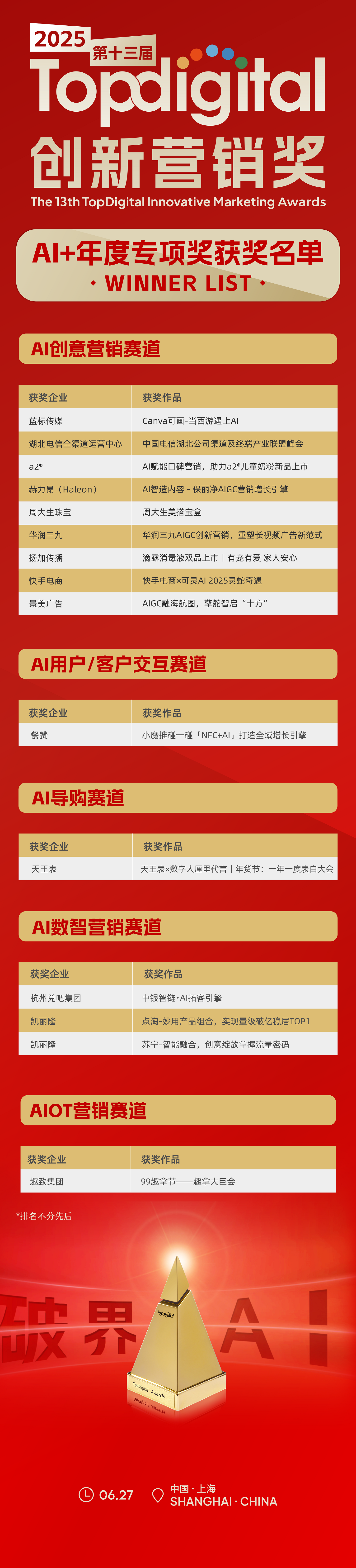 2025第十三届TopDigital创新营销奖获奖名单